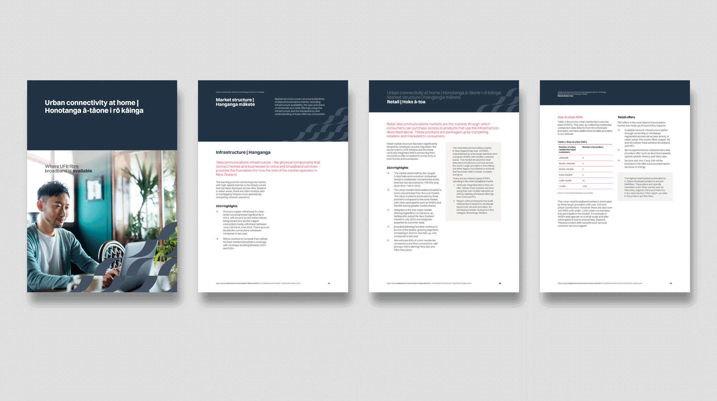 We recently designed this Telecommunications Monitoring Report. The design template we created aligned with the new brand style guide provided, but we also took the time to see how we could create (within these styles) a document that had some similarities in structure and layout to the previous year's document, to retain some visual link for the reader, as it is produced annually. It was really a merging of the best from both worlds! Various digital items were created.