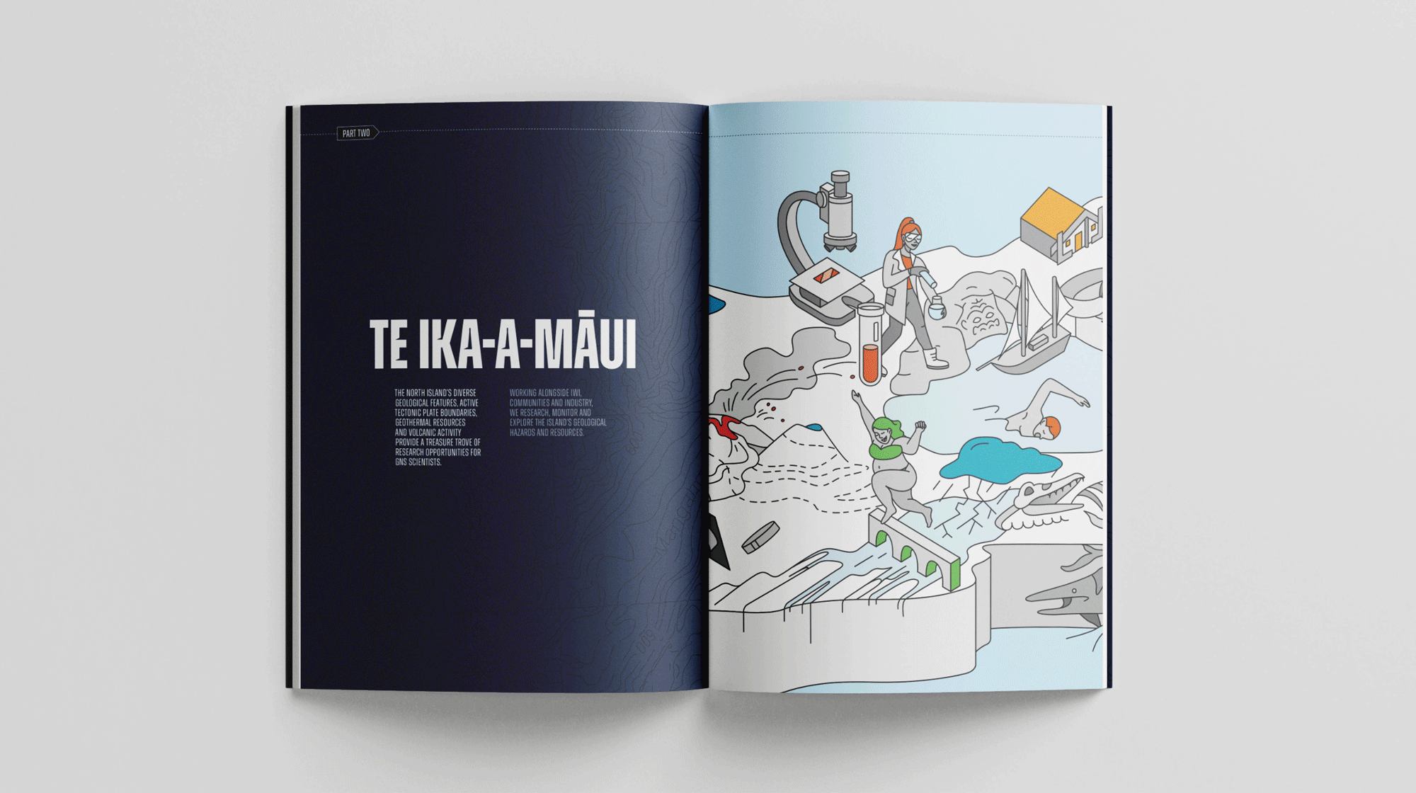 Starting with the theme “Science that matters, where it matters most”, Scenario was asked to create a document that tells the GNS Science story in a cohesive, visually interesting way, demonstrating impact beyond the words of the report and representing the depth and breadth of the value that GNS Science delivers.