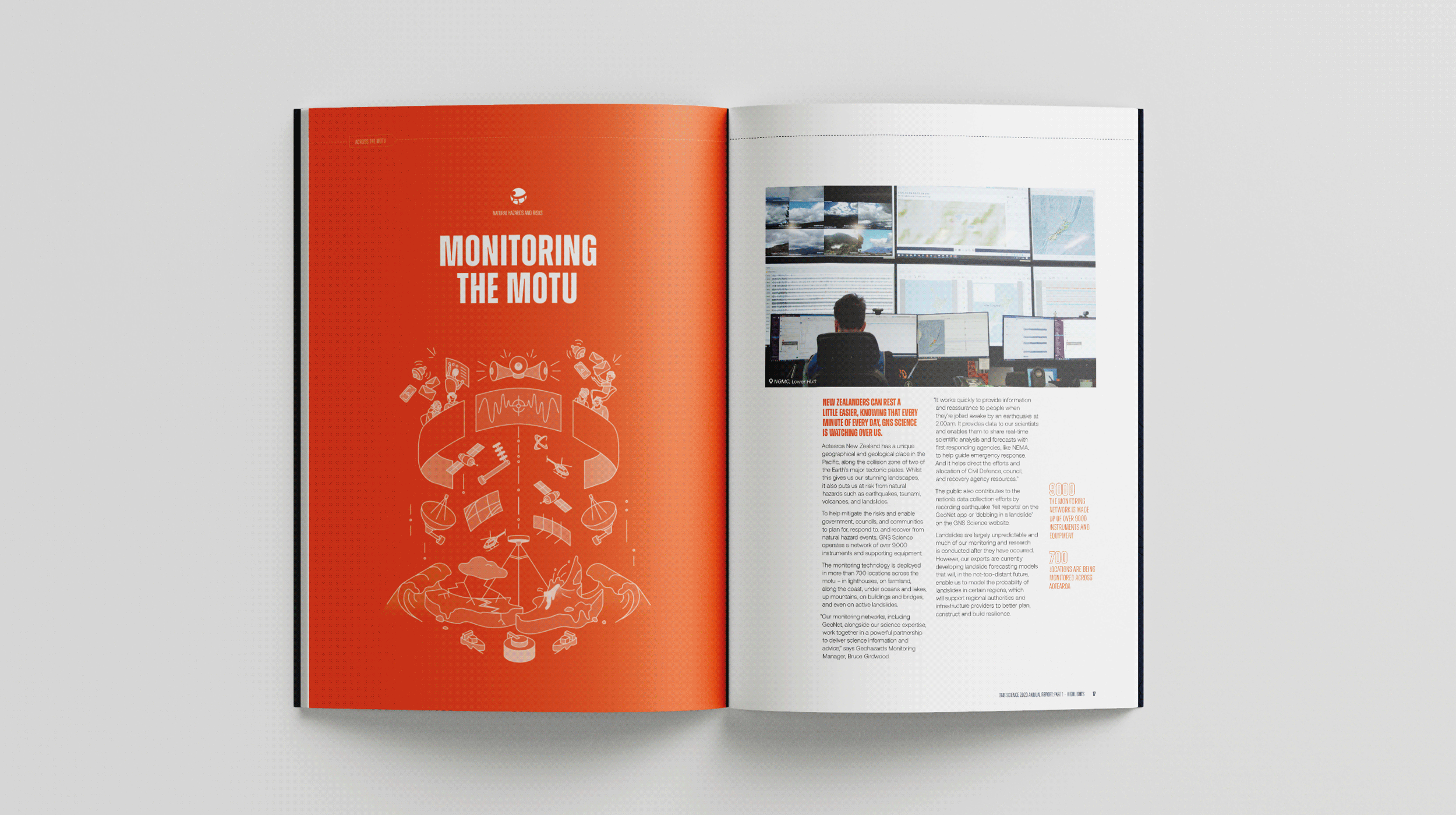 Our brief was to do something a little different with the GNS Science annual report than in recent years. While the report would still cover the year’s successes, key stories and financial and non-financial reporting, there was a desire to shift the focus to stakeholders – and the benefits GNS Science’s work delivers to Aotearoa New Zealand and New Zealanders.